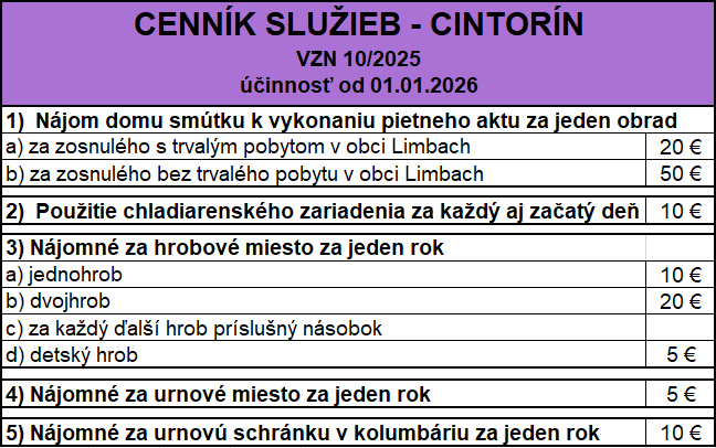 Úpravu hrobového miesta je možné uskutočniť až po odsúhlasení Obecným úradom v Limbachu. Žiadosť, ktorá sa nachádza nižšie, treba doručiť buď osobne alebo poštou na podateľňu Obecného úradu. Na základe žiadosti Vám bude vydané povolenie/nepovolenie na úpravu hrobového miesta.