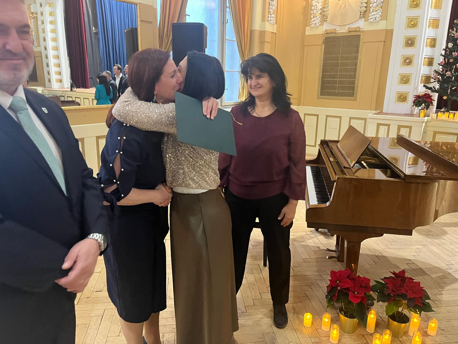 Ocenenie prevzala na slávnostnom Adventnom koncerte a oceňovaní víťazných projektov, ktoré sa konalo 11. decembra 2025 v Moyzesovej sieni FiF UK v Bratislave, naša pani riaditeľka Irena Číková.