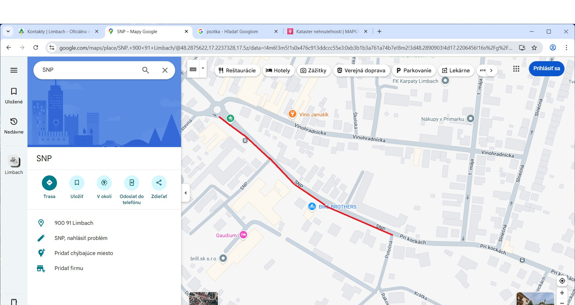 v obci Limbach v chodníku na ulici SNP, a to od kruhového objazdu po ulicu Na kockách, práce budú prebiehať